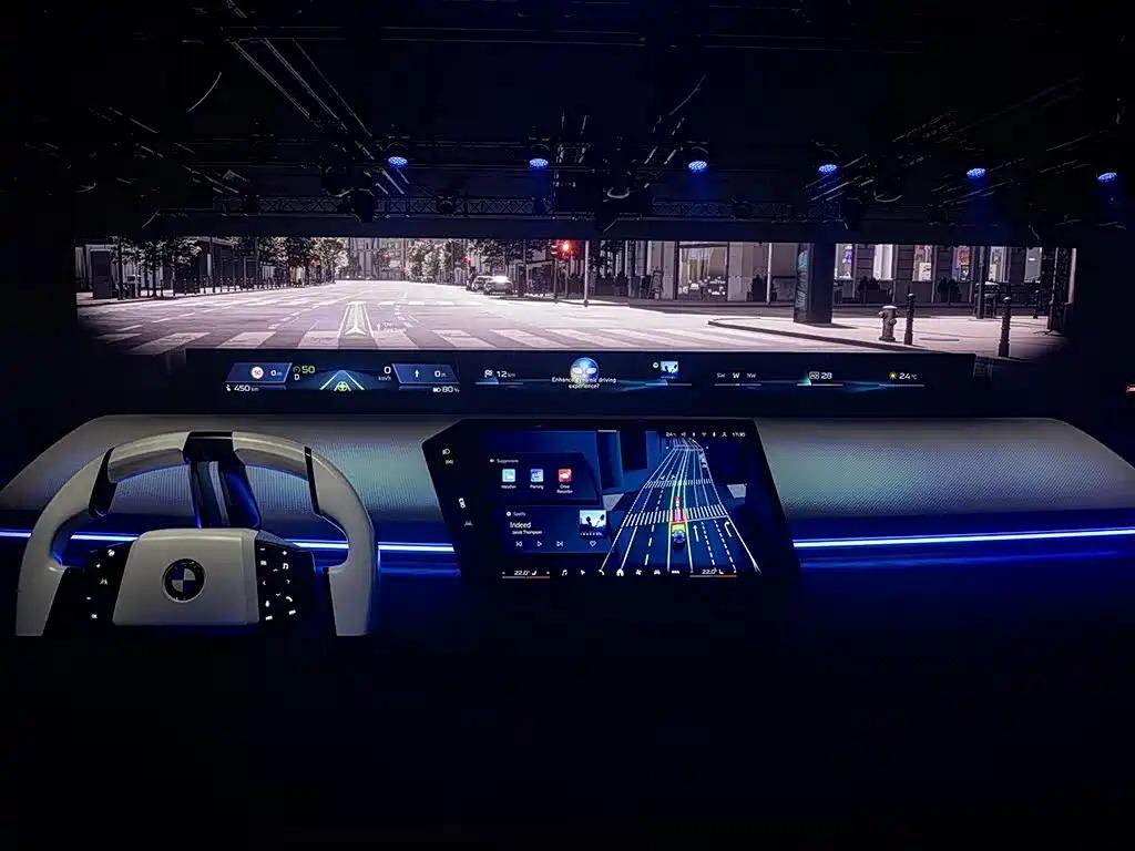 内饰最大的亮点是首次搭载“全景iDrive视平线全景显示投影”。这项创新显示技术借助超近距投影,在前挡风玻璃上投出近40英寸、4K级画质的AR界面,即便佩戴偏光墨镜仍可清晰阅读导航与行车数据。通过与实景深度融合,它能够在4-9米的视觉距离提供近乎真实的景深体验,重新定义人车交互的维度。