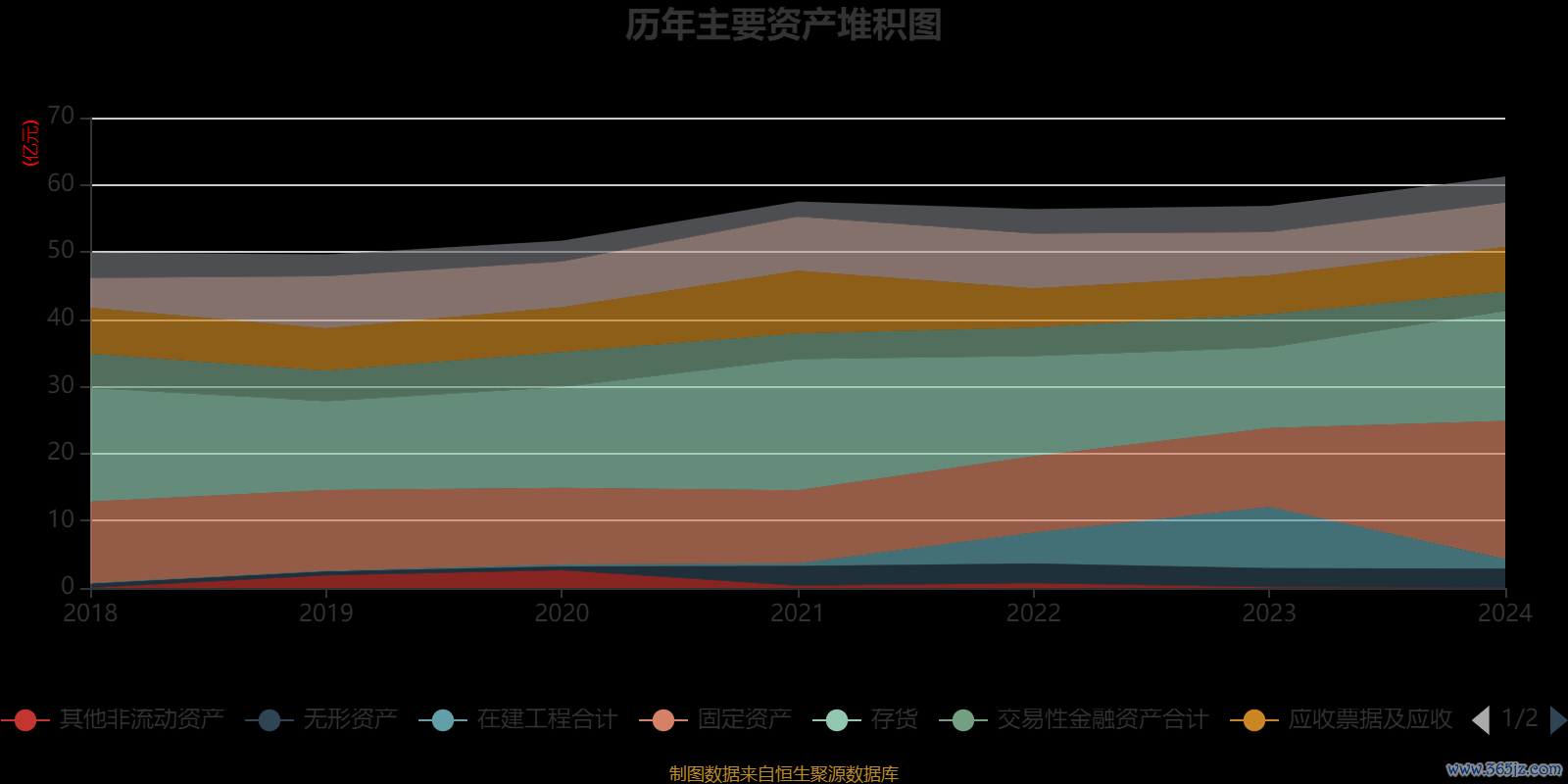 资产重大变化方面,截至2024年末,公司在建工程合计较上年末减少83.97%,占公司总资产比重下降13.69个百分点;固定资产较上年末增加75%,占公司总资产比重上升12.88个百分点;存货较上年末增加36.34%,占公司总资产比重上升5.6个百分点;交易性金融资产合计较上年末减少42.28%,占公司总资产比重下降4.08个百分点。