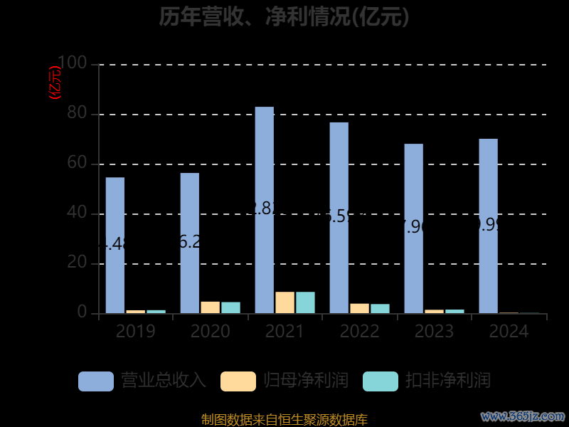中证智能财讯怡球资源(601388)4月26日披露2024年年度报告。2024年,公司实现营业总收入69.99亿元,同比增长2.98%;归母净利润1854.95万元,同比下降86.04%;扣非净利润1057.39万元,同比下降92.60%;经营活动产生的现金流量净额为-2.61亿元,上年同期为6亿元;报告期内,怡球资源基本每股收益为0.0084元,加权平均净资产收益率为0.43%。