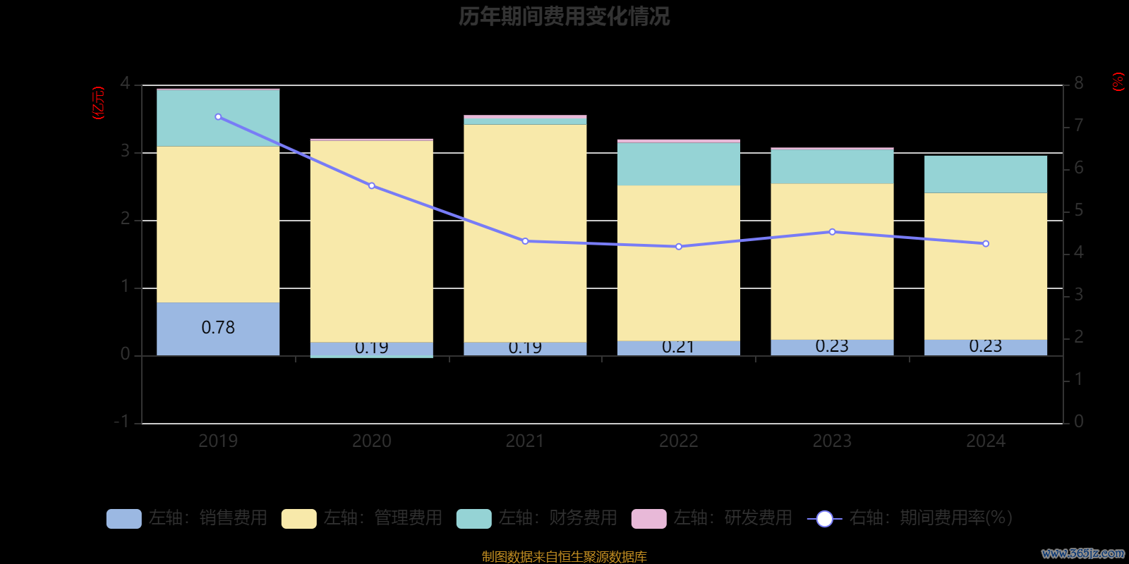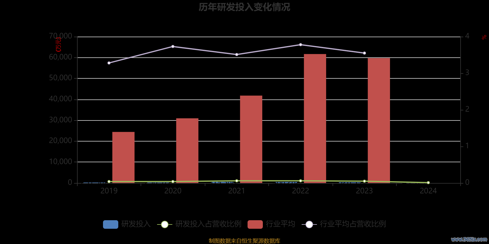 2024年全年,公司研发投入金额为49.58万元,同比下降84.9%;研发投入占营业收入比例为0.01%,相比上年同期下降0.04个百分点。此外,公司全年研发投入资本化率为0%。