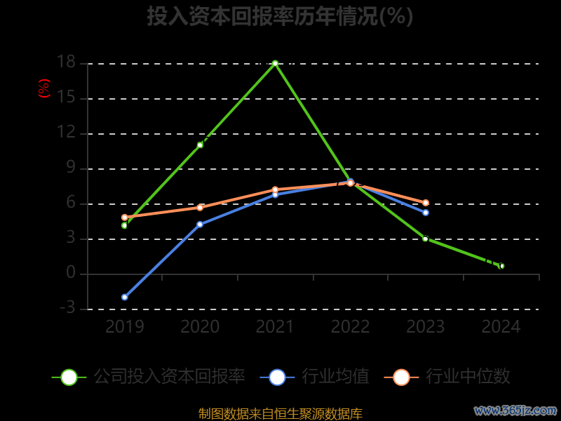 数据显示,2024年公司加权平均净资产收益率为0.43%,较上年同期下降2.69个百分点。公司2024年投入资本回报率为0.66%,较上年同期下降2.34个百分点。